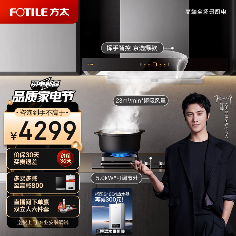 方太油烟机燃气灶套餐 烟灶套装 抽吸油烟机灶具 欧式挥手智控23大风量 可调节灶 EMD22H+TH27B天然气价格:4299.00元!