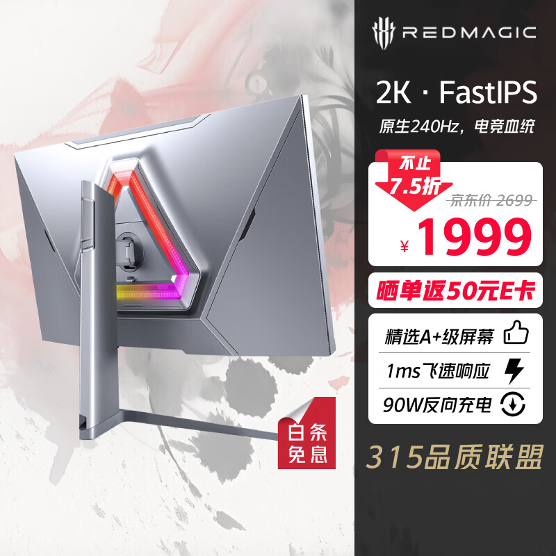 努比亚(nubia)红魔电竞显示器2K高清 27英寸 FastIPS 240Hz 1ms GTG响应 90W TypeC反向充电 游戏家用办公价格:2699.00元!