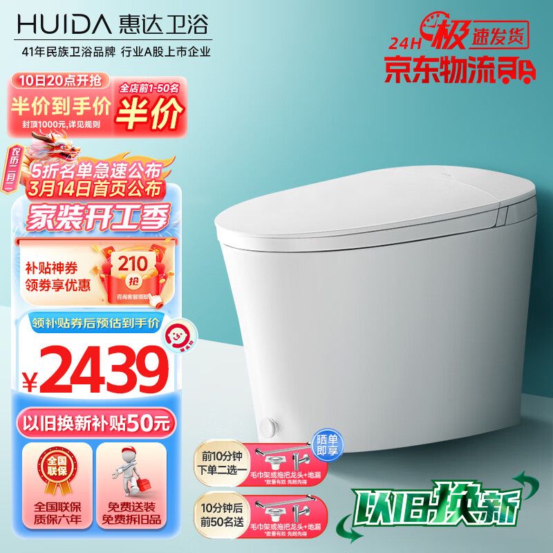 惠达(HUIDA)智能马桶泡沫盾带水箱无水压限制一体式坐便器HDZB-Z896 400坑距价格:3349.00元!