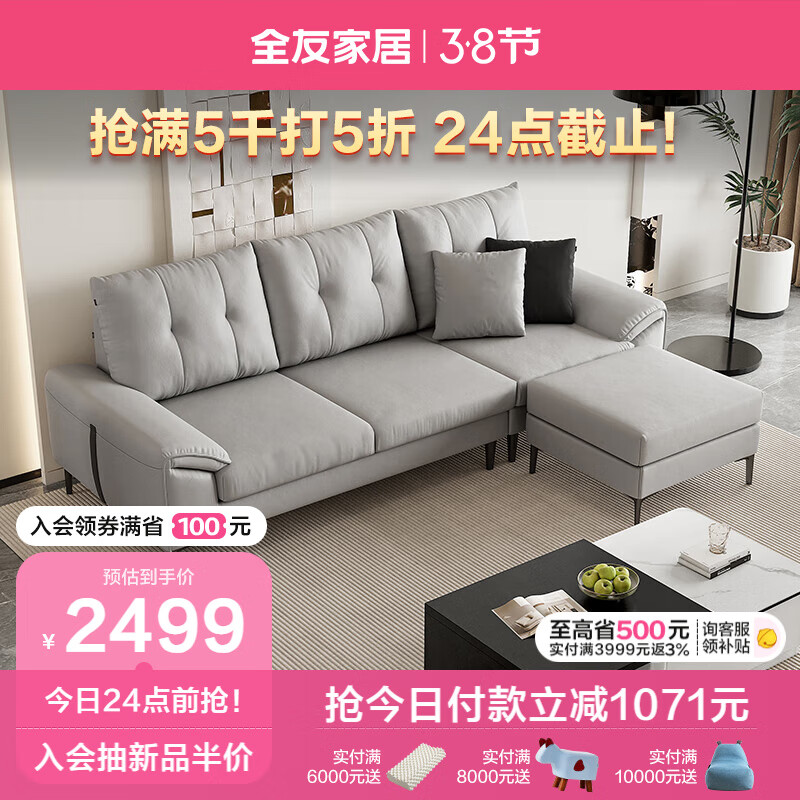 全友家居 科技布沙发客厅简约现代小户型直排式布艺沙发家用111037价格:3570.00元!