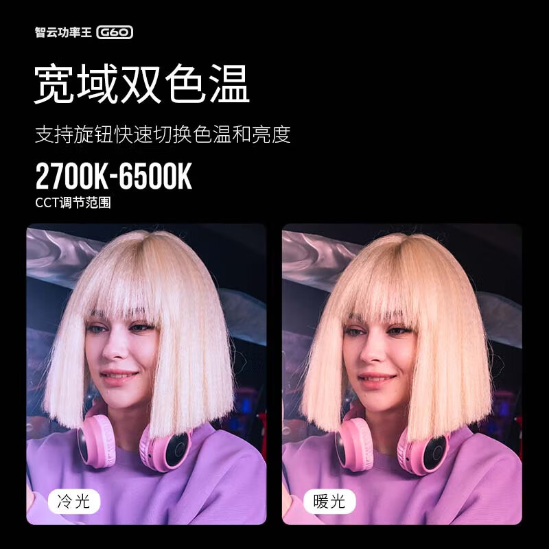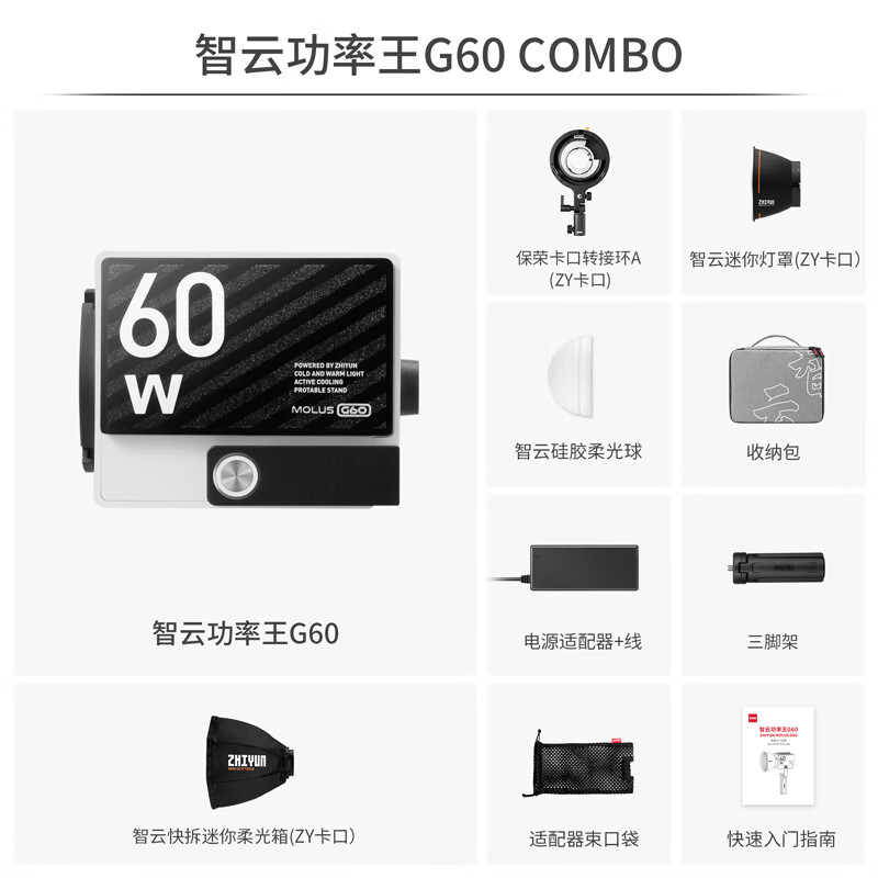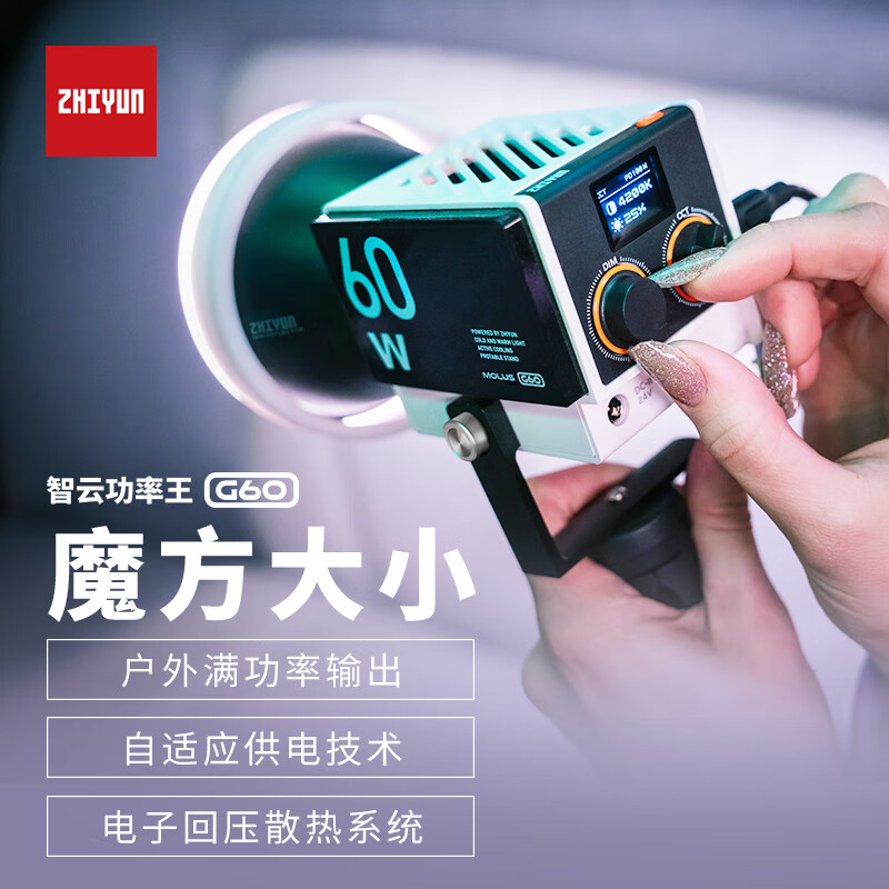 zhi yun智云功率王 G60摄影灯便携外拍常亮led补光灯直播短视频拍摄灯掌上60W专业影视灯G60 COMBO价格:1189.00元!