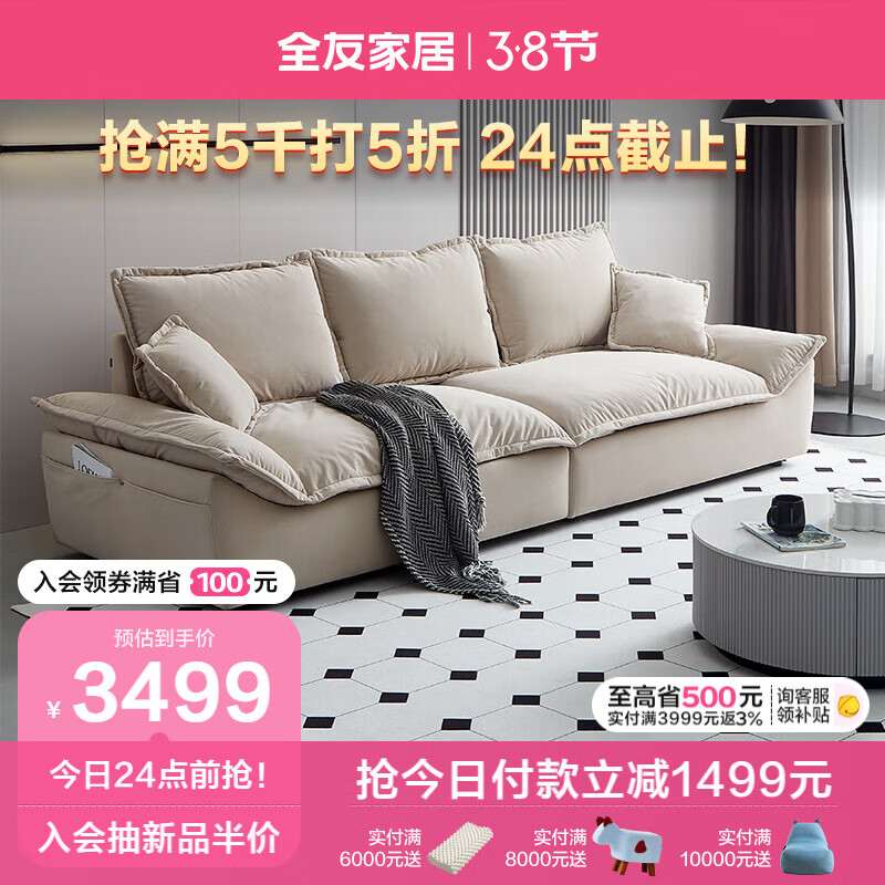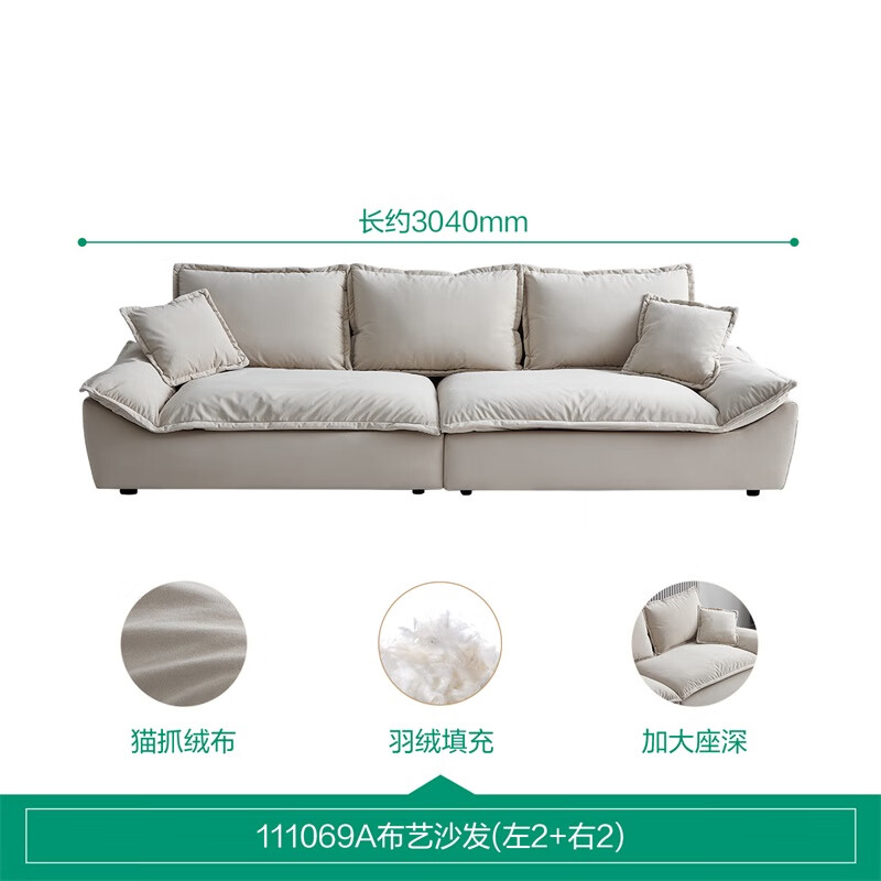 全友家居 猫抓布帆船沙发客厅意式极简直排一字布艺沙发小户型111069价格:4998.57元!