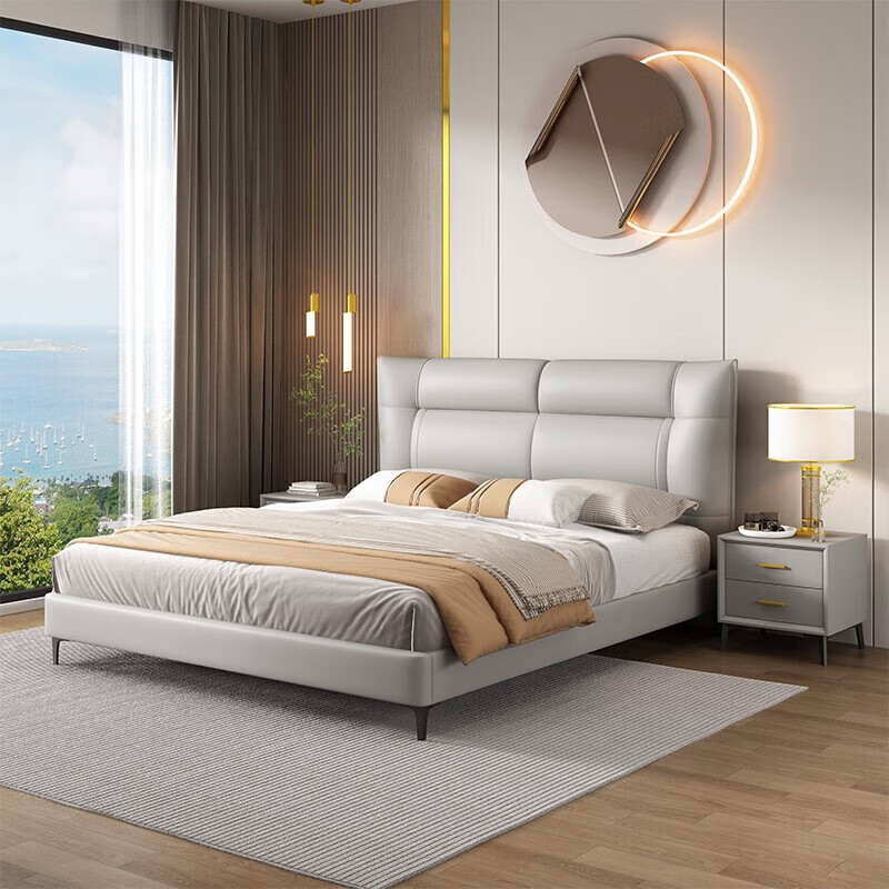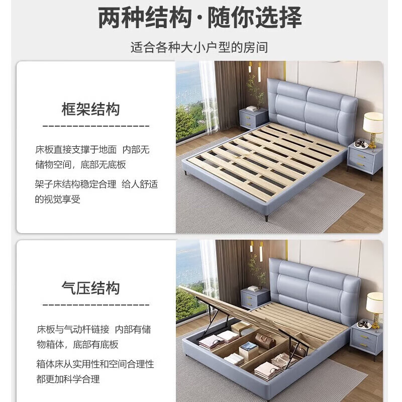 优卡吉真皮双人床1.8x2米主卧现代软包床SD-6005# 1.8气压床+床垫+柜*2价格:3799.00元!