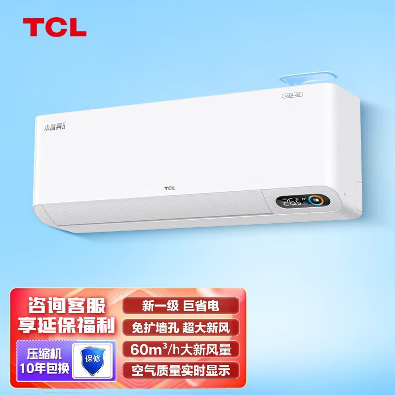 TCL 【新风空调】 2匹 新一级60m3/h大新风量变频冷暖小蓝翼Ⅱ智能空调挂机 KFRd-46GW/D-SWA11Bp(B1)价格:4999.00元!