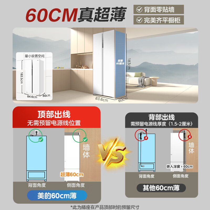 美的(Midea)60cm薄系列456升电冰箱双开门对开超薄嵌入式一级能效无霜家用净味BCD-456WKPZM(E)大容量价格:4899.00元!
