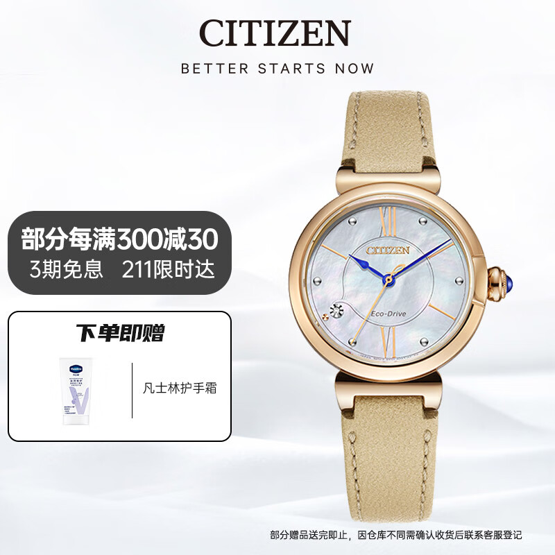 西铁城(CITIZEN)手表女日韩表小铃花光动能贝母盘皮带学生送礼物女友EM1073-18D价格:2500.00元!