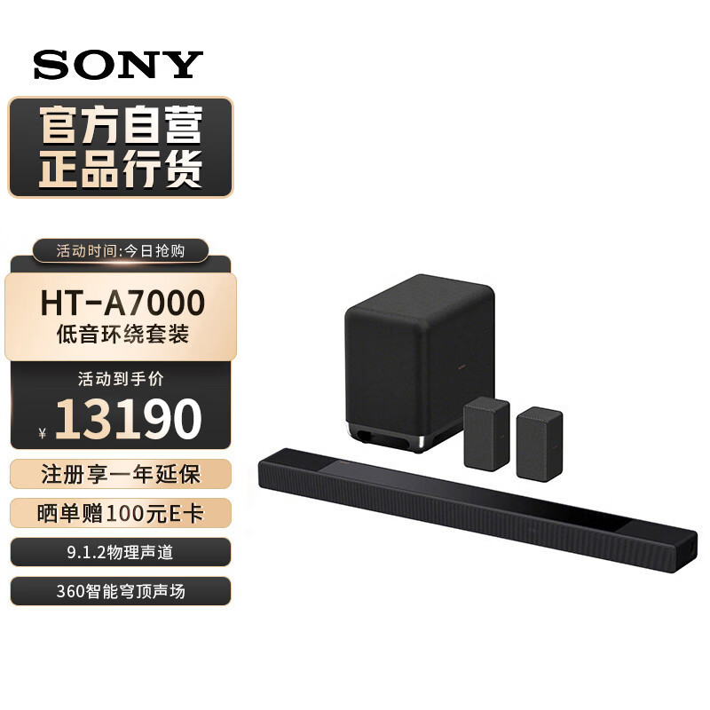 索尼(SONY)HT-A7000+SW5+RS3S 低音环绕套装 9.1.2 全景声 360智能穹顶 4K120Hz 回音壁 家庭影院 电视音响价格:13190.00元!