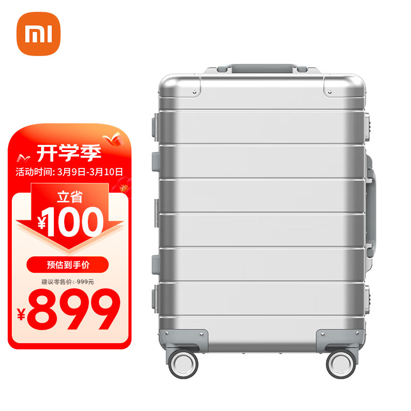 小米行李箱铝镁合金拉杆箱金属旅行箱高端商务密码箱20英寸银色价格:899.00元!