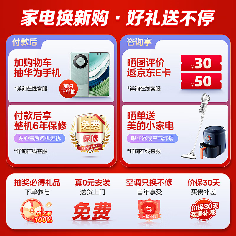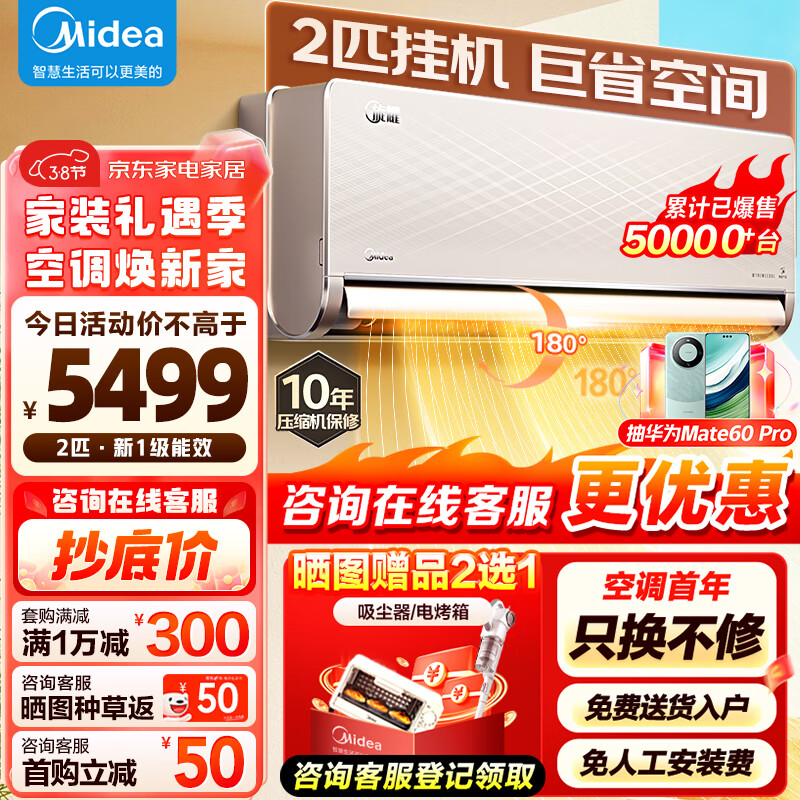 美的(Midea)空调2匹挂机 旋耀 新一级能效 变频冷暖 节能省电 壁挂式 大风量 KFR-50GW/N8MXA1 客厅商铺空调价格:5499.00元!