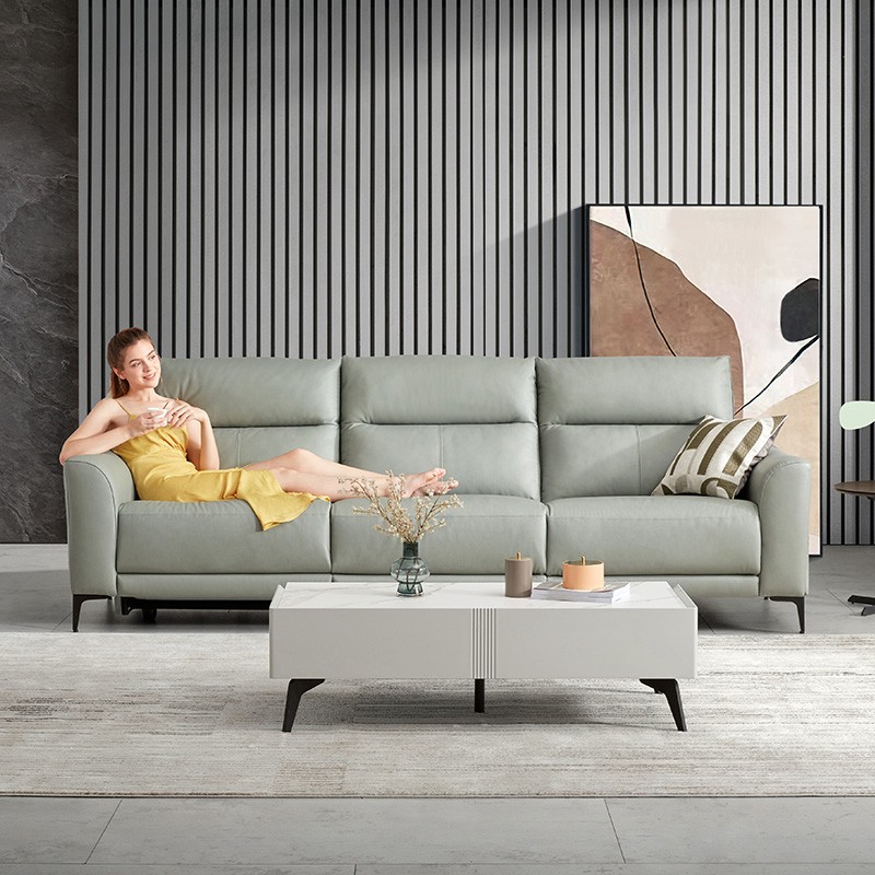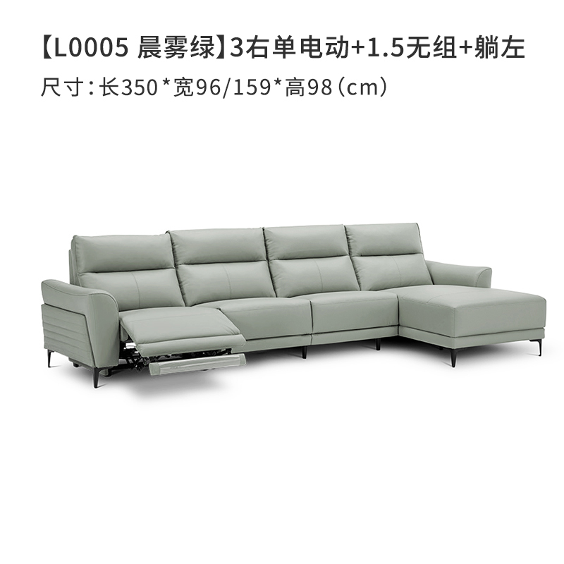 顾家家居现代电动功能头层牛皮沙发6055绿3右单电动+1.5无组+躺左价格:7899.00元!