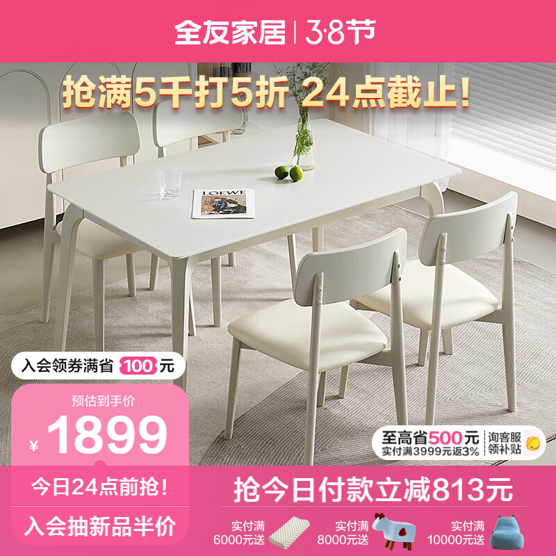 全友家居 餐桌奶油风餐桌椅组合耐用钢化玻璃台面餐厅吃饭桌子DW1180B价格:2712.86元!
