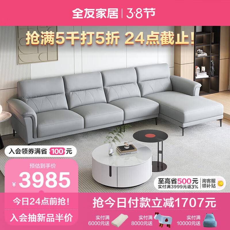 全友家居 现代简约科技布沙发客厅转角贵妃布艺家具沙发家用102727价格:5692.86元!