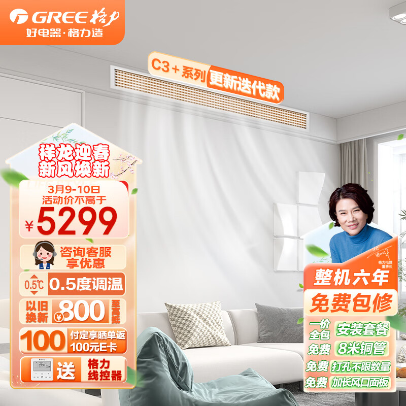 格力(GREE)中央空调 FJ风管机一拖一 大1匹家用嵌入式空调 二级能效 FJR2.6Pd/Cb3Nh-N2京仓派送(一价全包)价格:5293.70元!