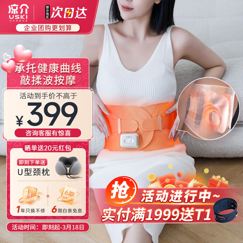 凉介(USKI)腰部按摩器按摩仪震动按摩腰椎轻薄腰带科学支撑腰部热敷送父母男女友节日礼品妇女节礼物 T1落日粉橙【升级通用码数】价格:699.00元!