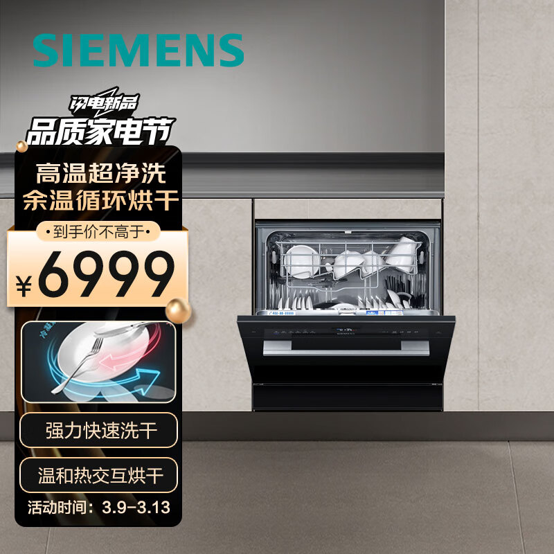 西门子(SIEMENS)西班牙原装进口 加强烘干 高温除菌家用嵌入式洗碗机10套SC456B99BC价格:6999.00元!