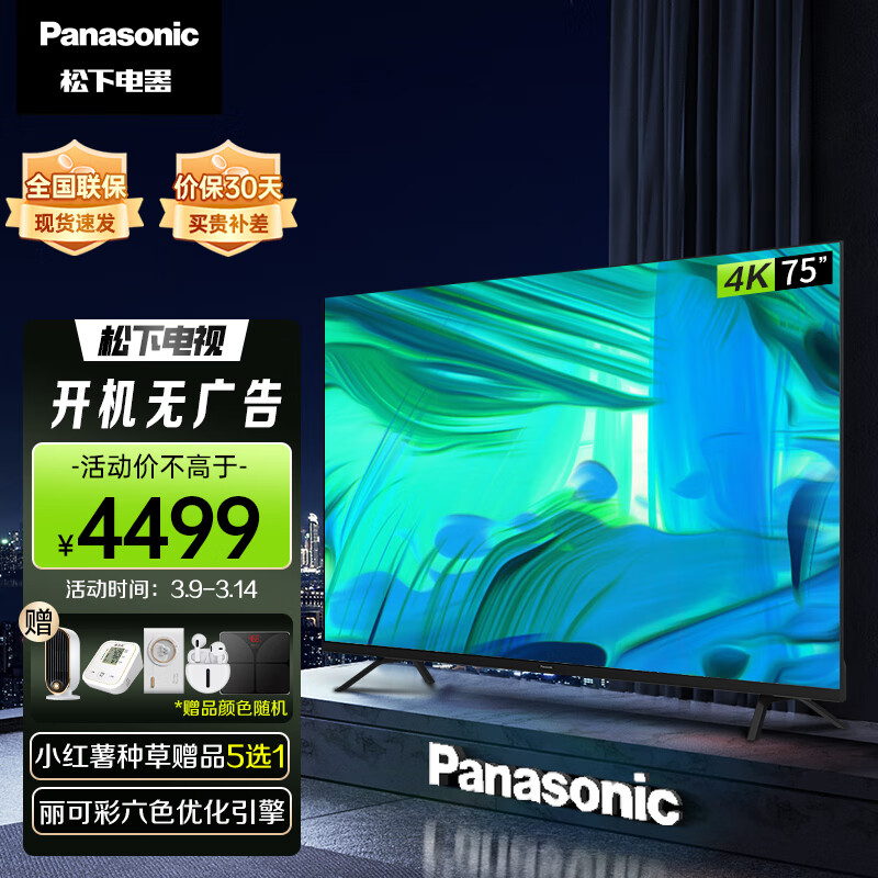 松下(Panasonic)电视LX560 75英寸 丽可彩4K屏MEMC HDR10 蓝牙语音 开机无广告智能电视机 TH-75LX560C价格:4499.00元!