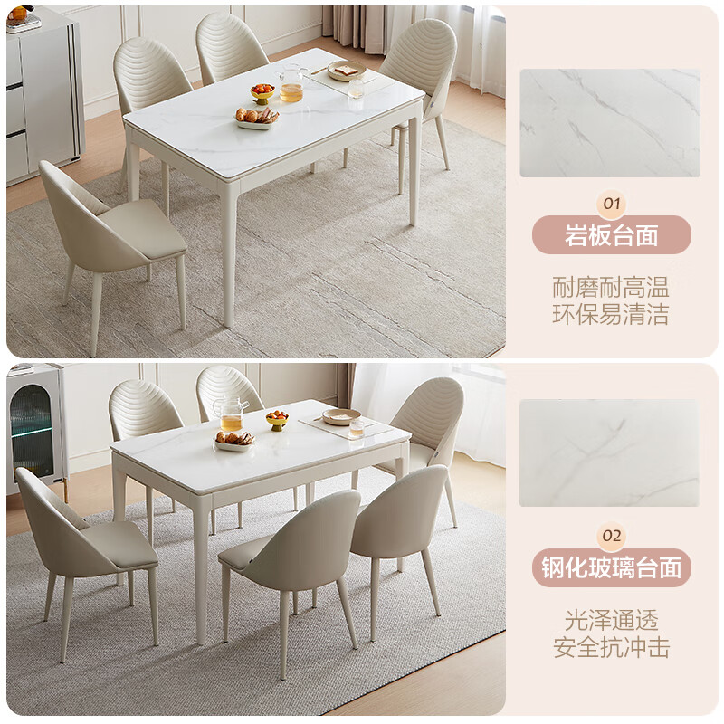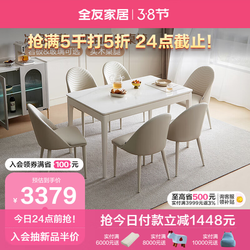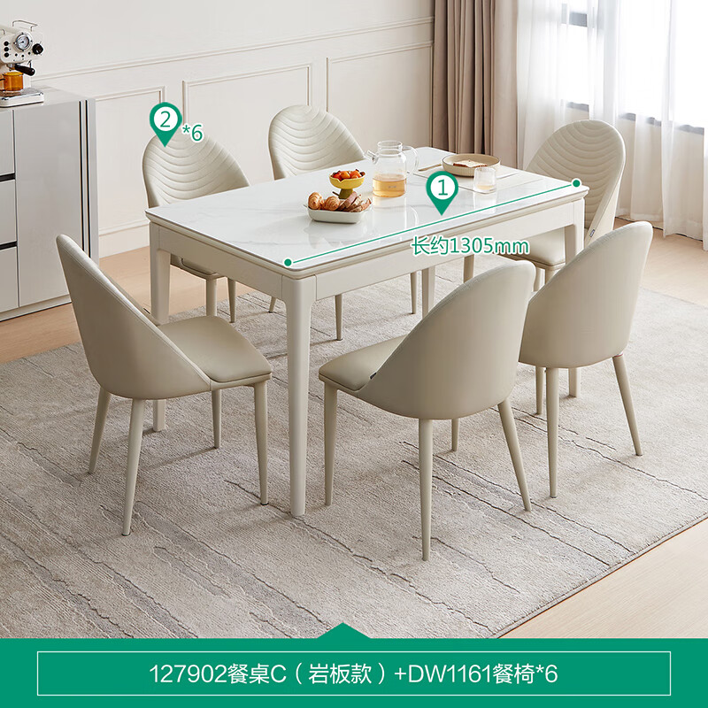 全友家居奶油风亮光岩板餐桌椅家用橡胶木脚柱吃饭桌子餐厅家具127902价格:4827.14元!