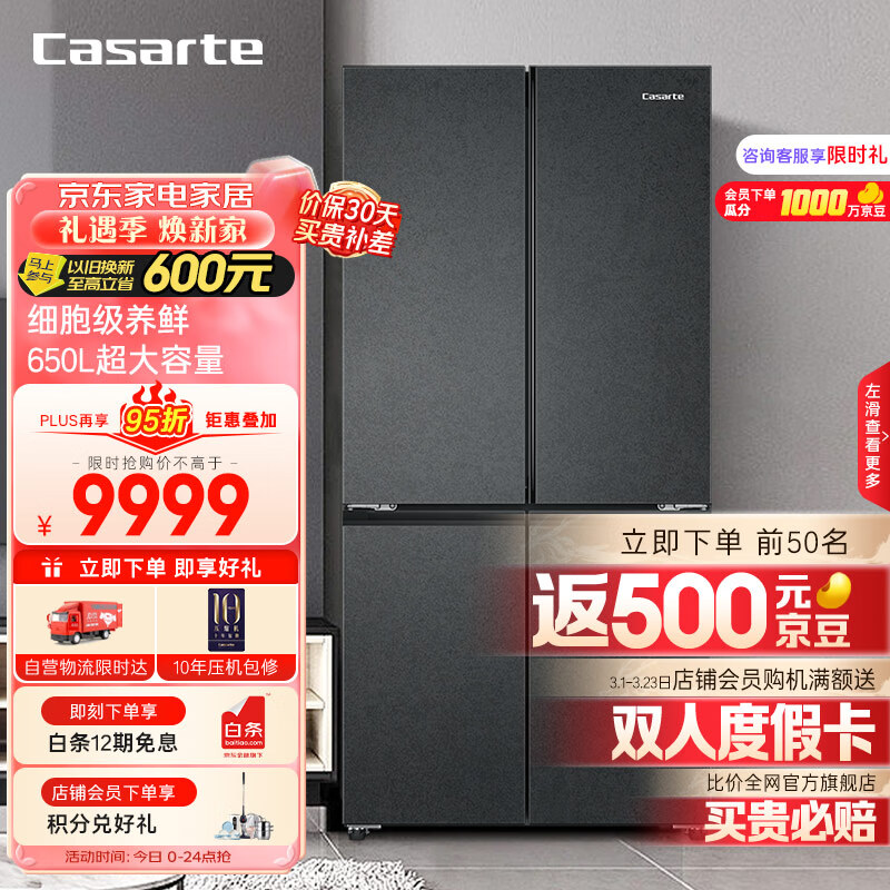 卡萨帝(Casarte)650升原石星岩系列635升级款十字四开门冰箱一级能效变频家用三系统超大容量BCD-650WGCTDM7D9U1价格:9999.00元!