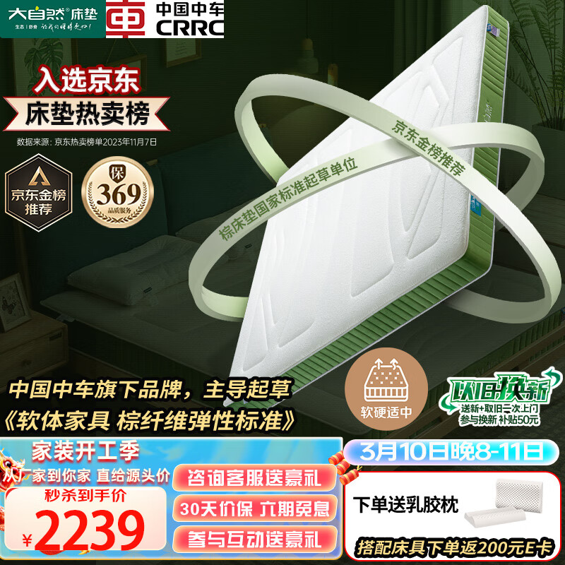 大自然山棕床垫椰棕床垫 可定制榻榻米偏硬棕垫 森梦1.0米*1.9米*13厘米价格:2599.00元!