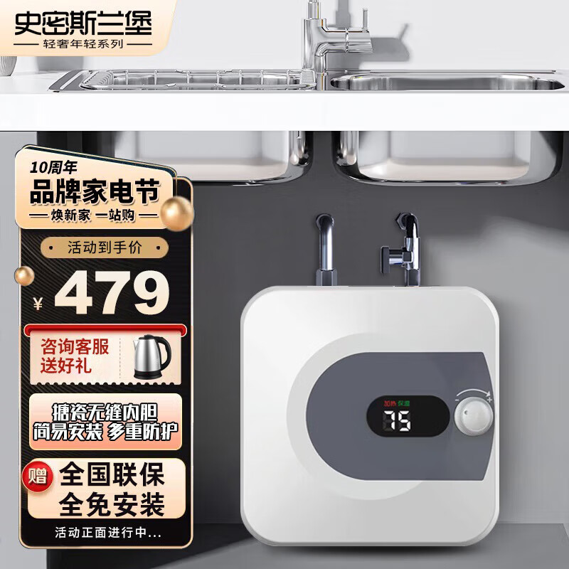 史密斯兰堡电热水器储水式小厨宝家用10升 1600W上出水小型台下式厨宝宝卫生间阳台旋钮数显款暖水宝 BLJ-A10价格:479.00元!