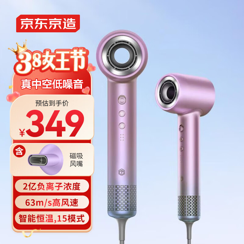 京东京造 奈丝·智能高速吹风机套装 负离子家用电吹风机大功率电吹风筒速干无叶 三八妇女节礼物女 紫价格:449.00元!