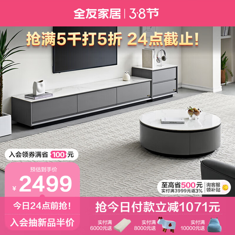 全友家居 岩板茶几电视柜组合现代简约客厅家用圆形茶几边几DW1055B价格:3570.00元!