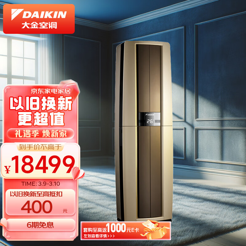 大金空调 28-50㎡适用 新一级能效 3匹变频 冷暖 家用客厅 立式柜机 以旧换新 FVXF172WC-N价格:18499.00元!