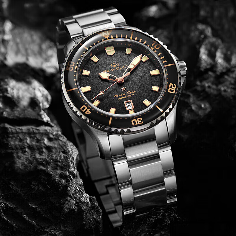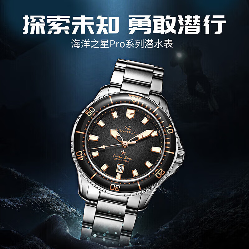 海鸥(SEAGULL)手表男士自动机械表 男表 海洋之星pro300米防水潜水表(烟熏44mm)价格:3419.00元!
