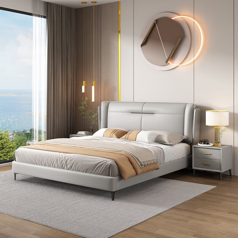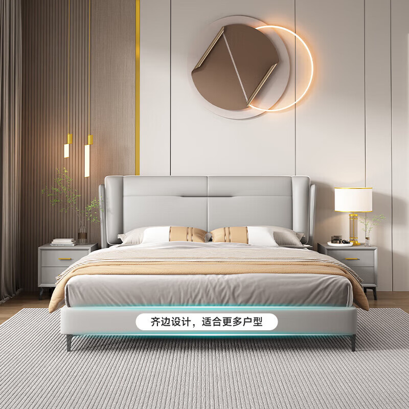 优卡吉轻奢真皮床主卧室软靠包现代简约双人床SD-6008# 1.5气压床+柜*1价格:2599.00元!