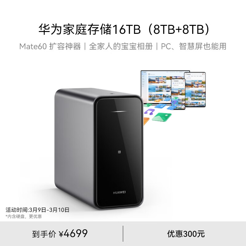 华为家庭存储16TB Mate 60手机一碰扩容双盘位nas网络存储器相册备份家用硬盘网盘私有云服务器价格:4699.00元!