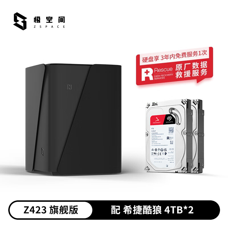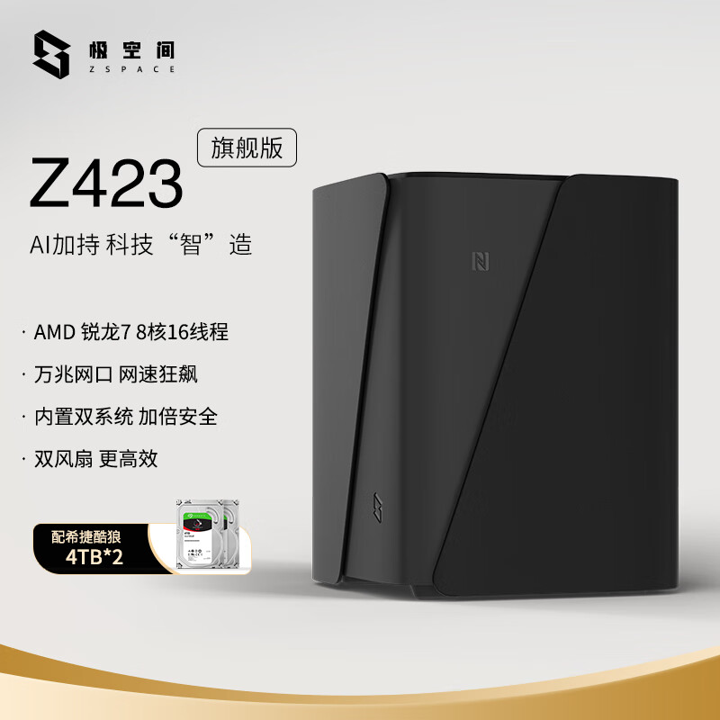 极空间私有云Z423 旗舰版 “8”盘位 万兆网络 Nas网络存储服务器【配2块4T希捷酷狼硬盘】碳晶灰价格:8099.00元!
