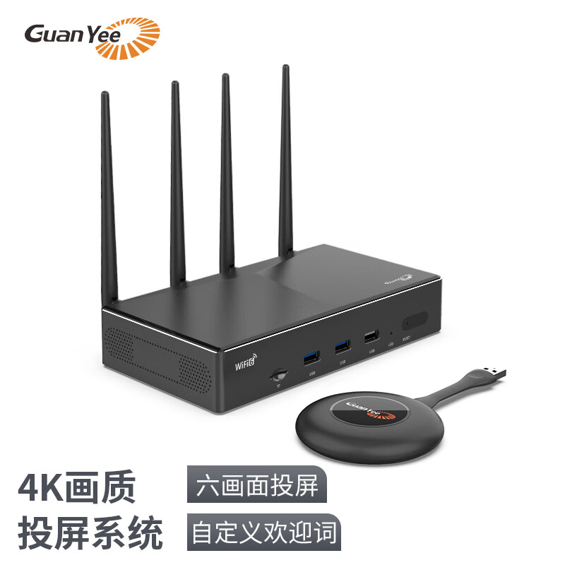 GUANYEE 冠艺无线投屏器HDMI传输器手机电脑平板会议办公usb一键穿墙同屏4K投影电视企业级 701(六画面分割)价格:3980.00元!