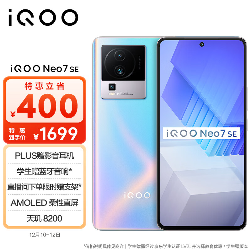 vivo iQOO Neo7 SE 12GB+512GB 银河 天玑8200 120W超快闪充 120Hz柔性直屏 5G游戏电竞性能手机价格:2099.00元!