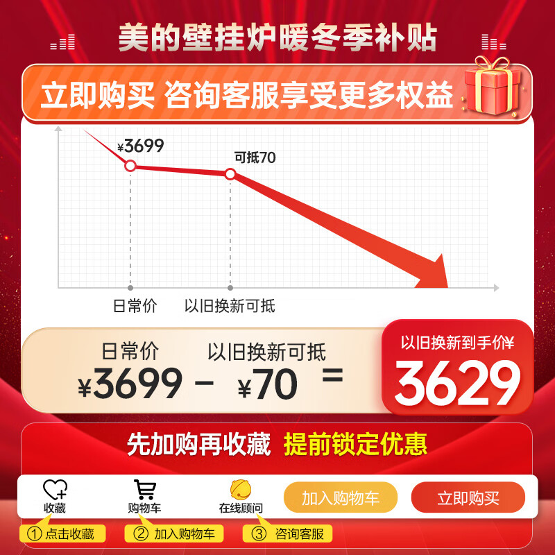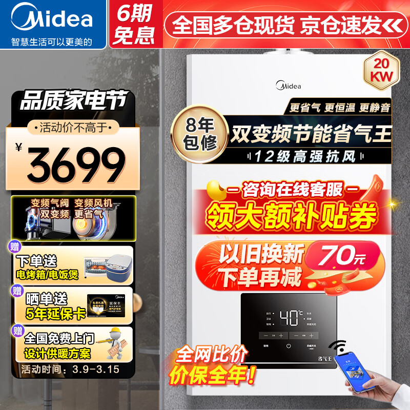 美的(Midea)壁挂炉天然气采暖炉家用燃气锅炉热水器地暖暖气片洗浴两用恒温热水器电小体积 20KW -R03【双变频分段燃烧】适用≤120㎡价格:3659.00元!