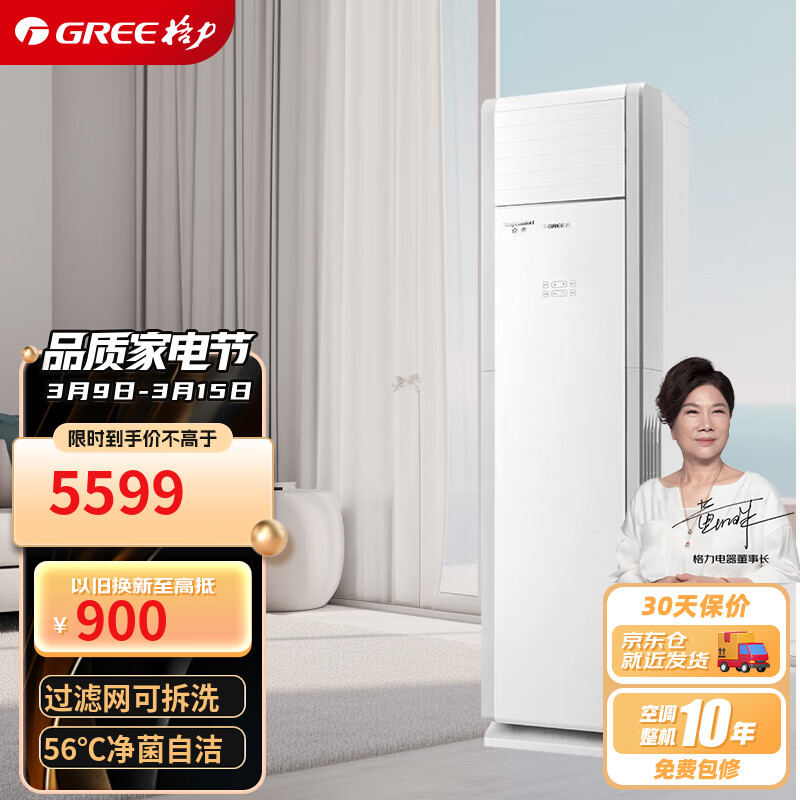 格力(GREE)2匹 京爽 新三级能效 变频冷暖 高温自清洁 立柜式空调柜机 KFR-50LW/(50533)FNhAs-B3价格:5599.00元!