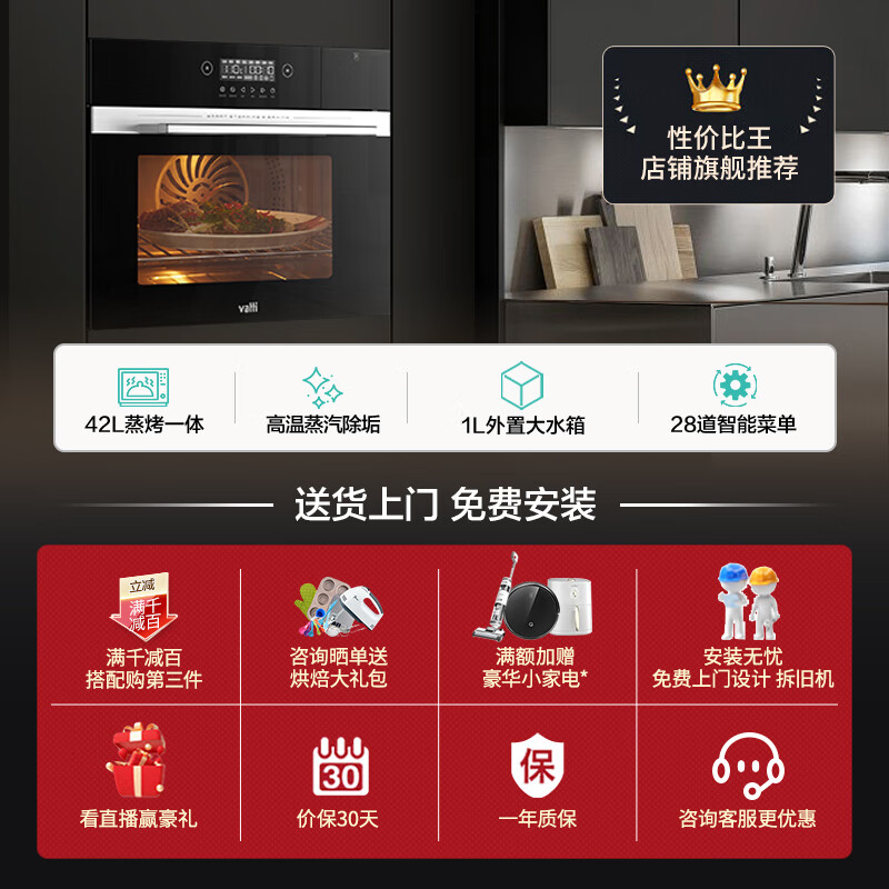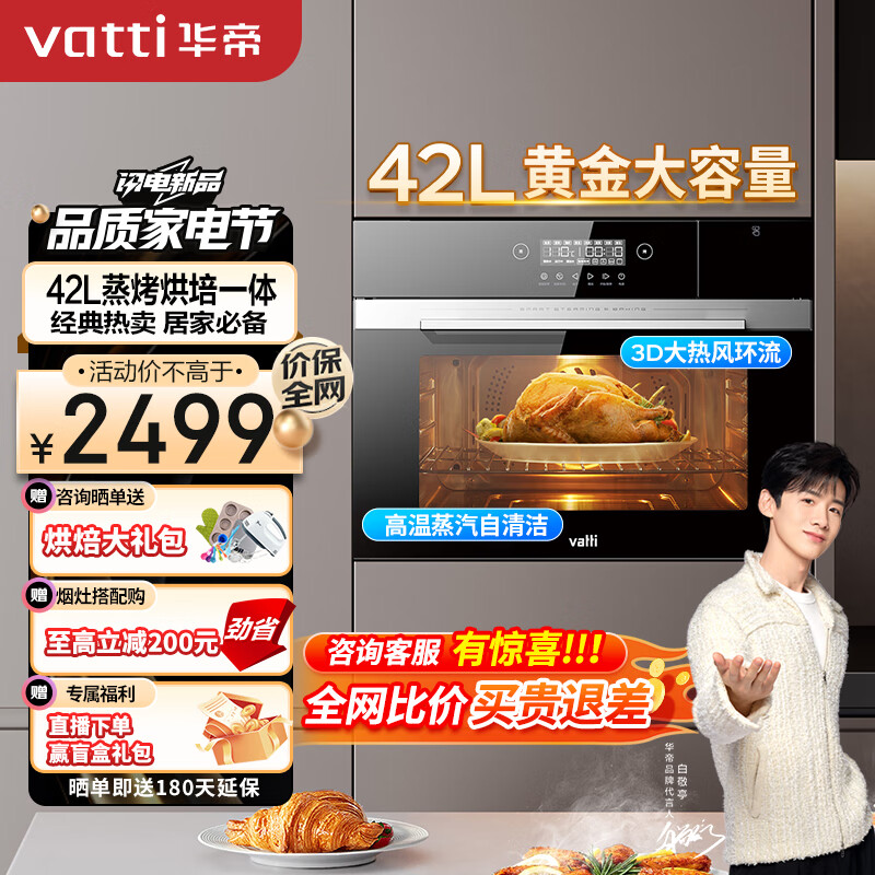 华帝(VATTI)蒸烤箱一体机 嵌入式蒸烤箱蒸烤一体家用 42L容量智能蒸烤 3D热风环流 蒸烤二合一 i23008价格:2599.00元!