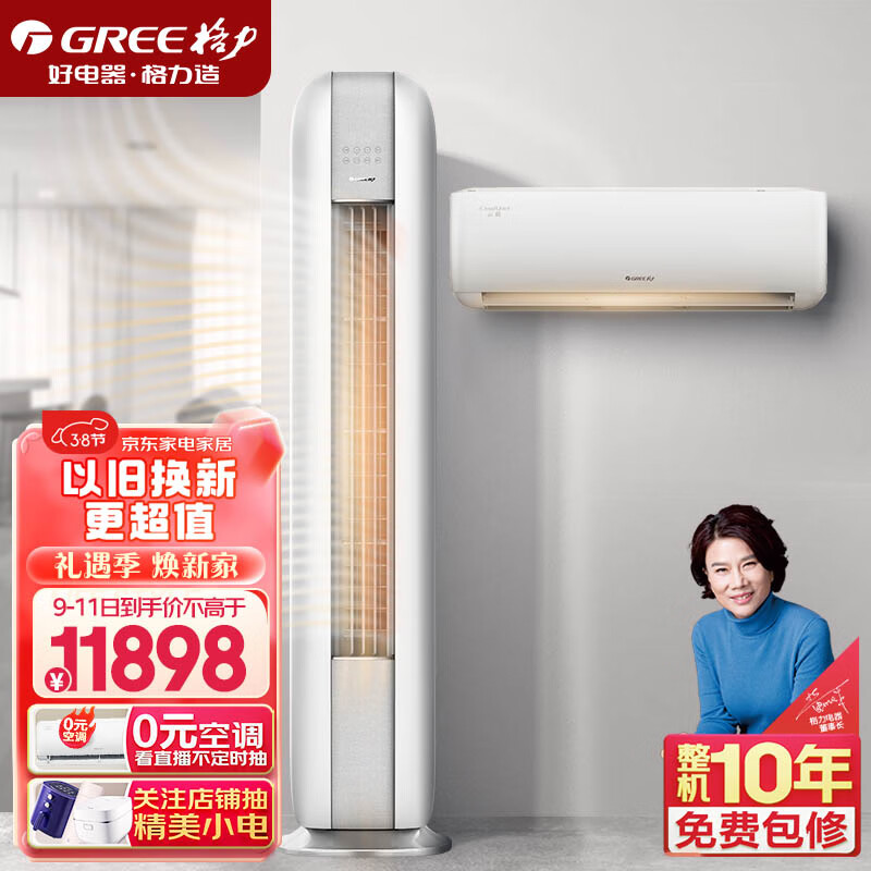格力(GREE)新1级能效 空调组合套装 (1.5匹云恬挂机+3匹云恬柜机)价格:11898.00元!
