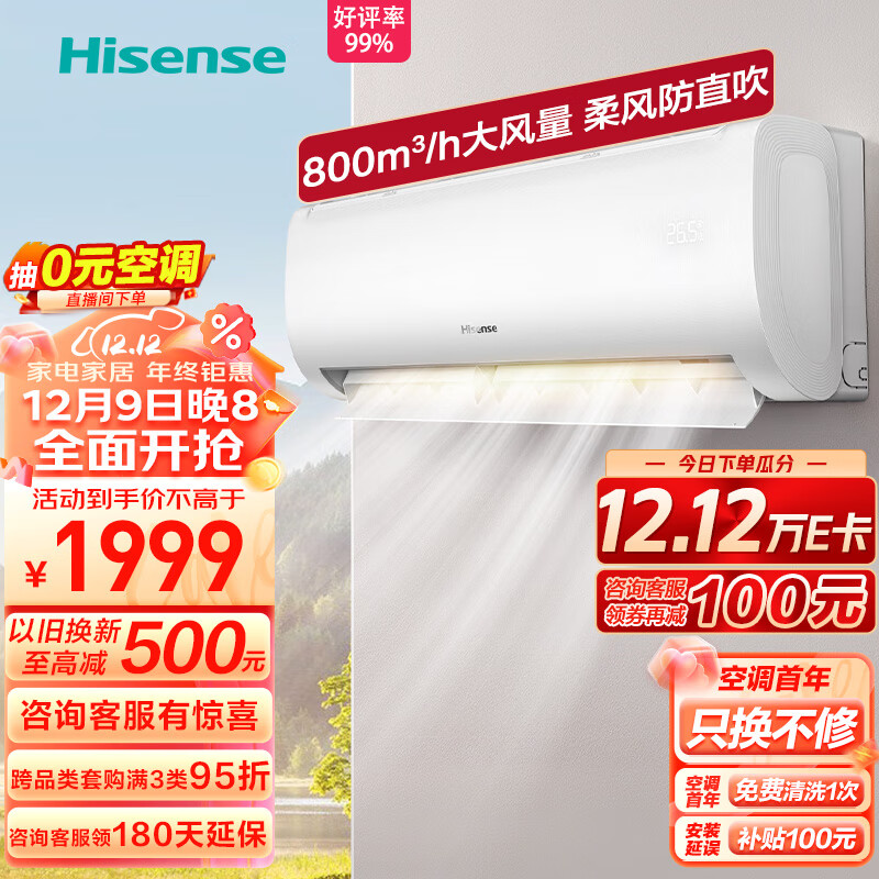 海信(Hisense)大1匹 速冷热 新一级能效 大风量速冷暖 APP智能变频防直吹壁挂式卧室空调挂机 KFR-26GW/E370-X1价格:1999.00元!