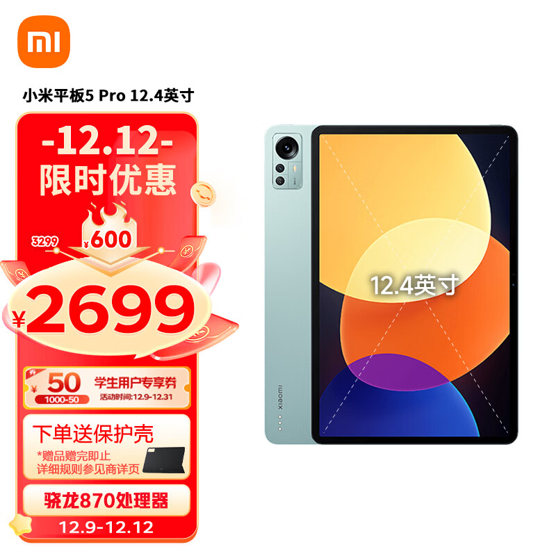 小米平板5Pro 12.4英寸 2.5K 120Hz高刷屏 骁龙870 12G+512GB 杜比影音娱乐办公网课学习平板电脑 森山绿价格:2699.00元!