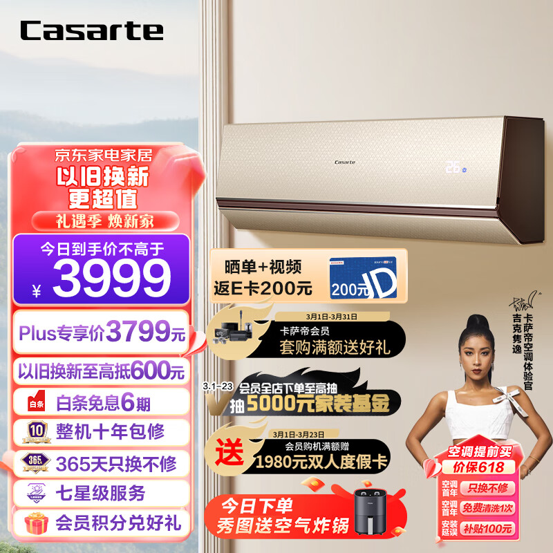 卡萨帝(Casarte)1.5匹 天悦 壁挂式空调挂机新一级变频 紫外线除菌 高端京东小家智能 CAS356ABA(81)U1以旧换新价格:3999.00元!