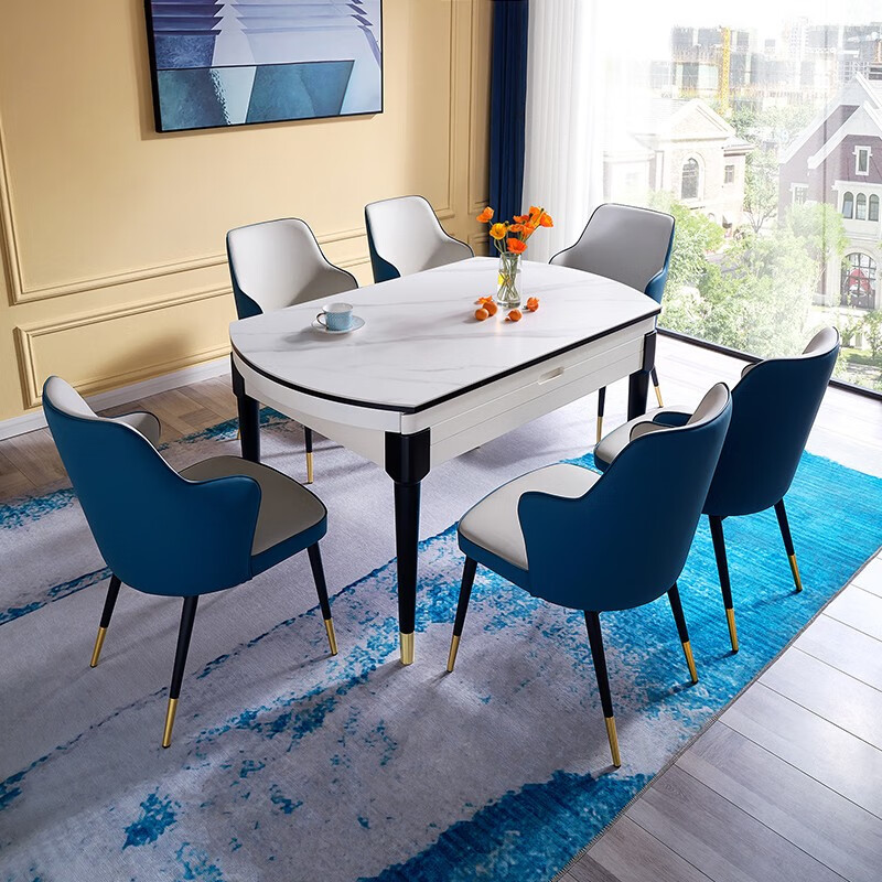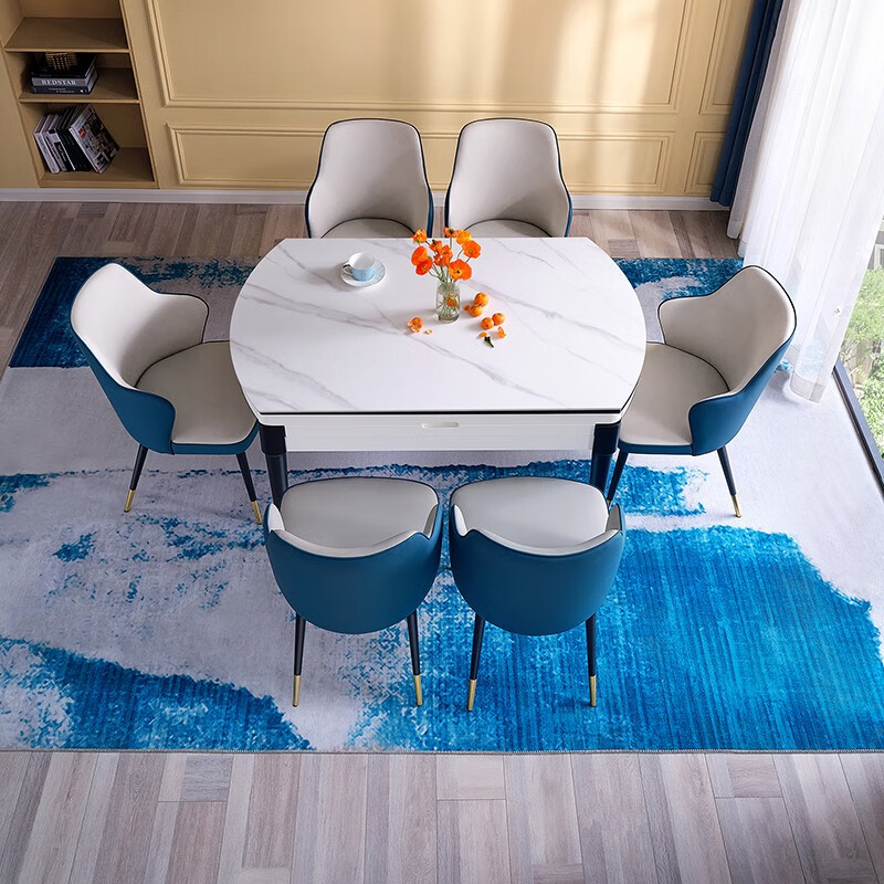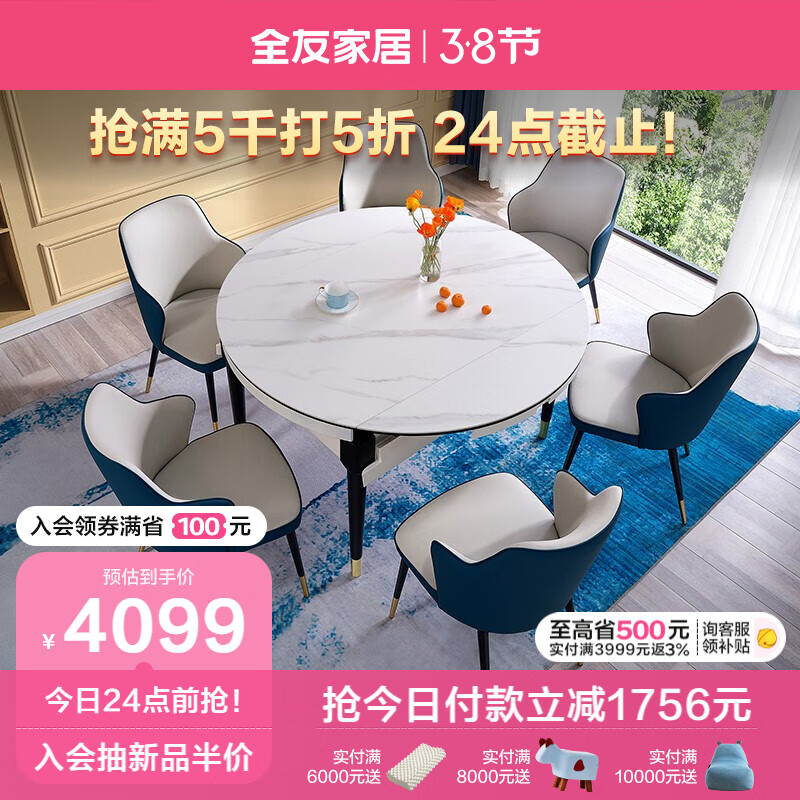 全友家居 餐桌北欧轻奢餐桌椅组合 可圆可方伸缩岩板台面桌子DW1029价格:5855.71元!