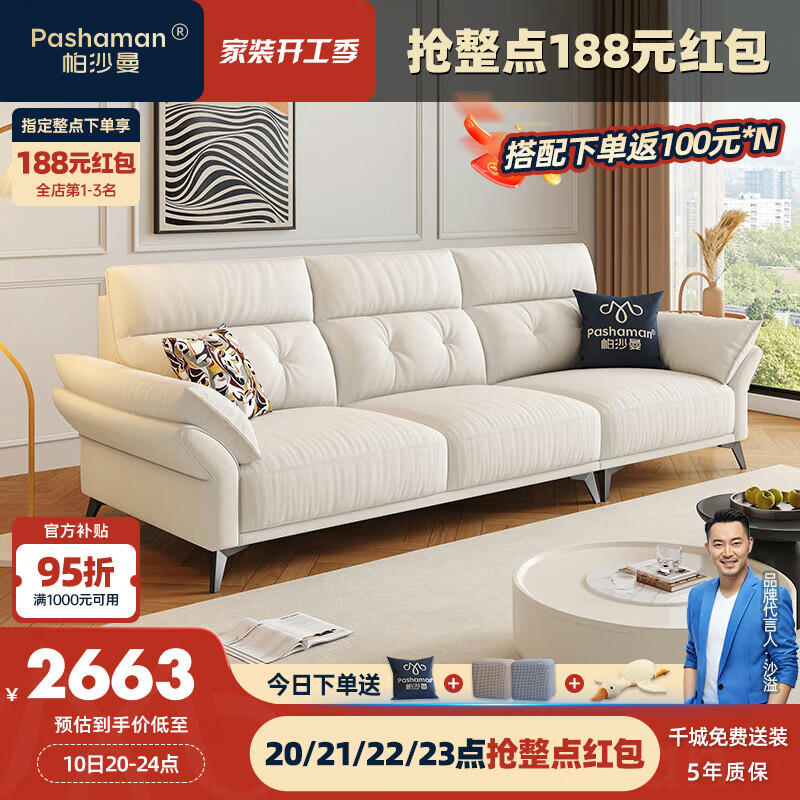帕沙曼(pashaman)猫抓布艺奶油风意式极简小户型客厅科技布高靠背沙发2.5米 1112ZF价格:5918.00元!