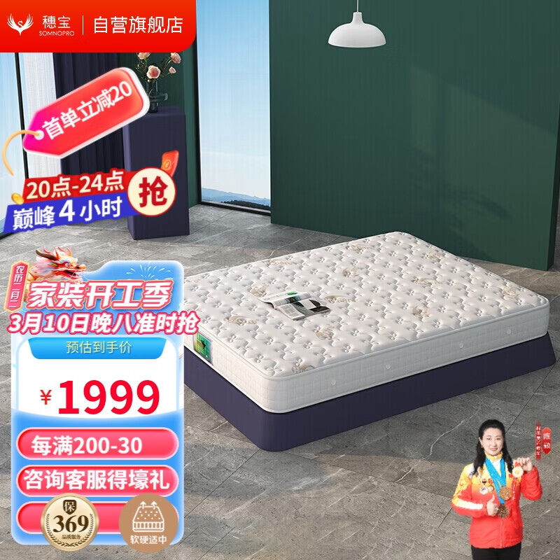 穗宝(SYMBOL)床垫床护垫套餐奥南乳胶床垫150*190+超声波床护垫150x200价格:2459.00元!