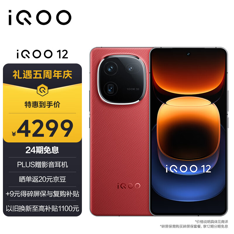 vivo iQOO 12 16GB+512GB燃途版 第三代骁龙 8 自研电竞芯片Q1 大底主摄潜望式长焦 5G手机价格:4299.00元!