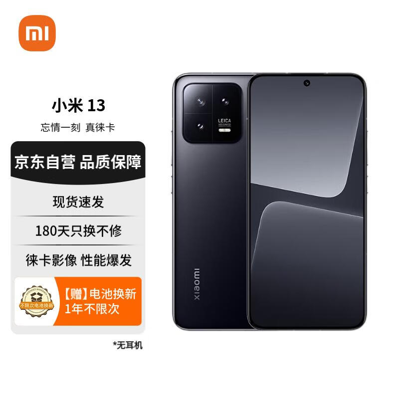 小米13 徕卡光学镜头 第二代骁龙8处理器 超窄边屏幕 120Hz高刷 67W快充 8+256GB 黑色 5G手机价格:3399.00元!