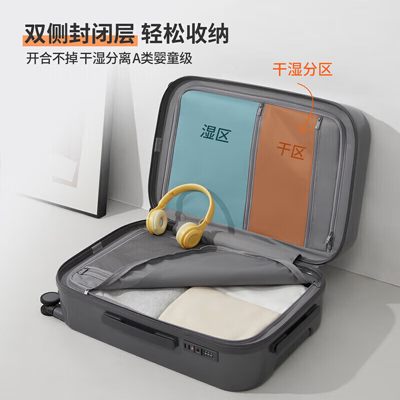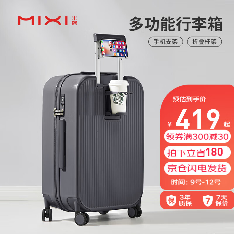 米熙多功能拉杆箱子行李箱大容量学生旅行箱包男密码箱女24英寸灰色90价格:599.00元!