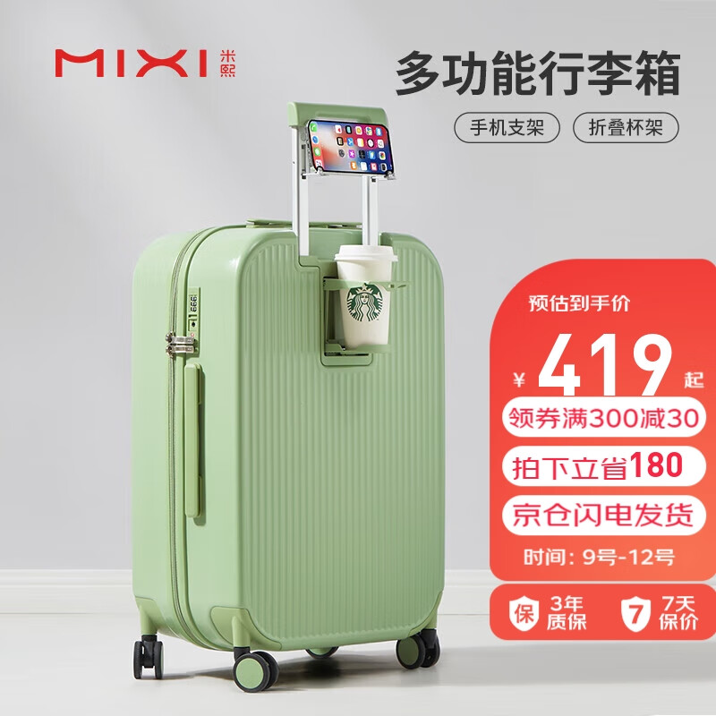 米熙多功能拉杆箱子行李箱大容量学生旅行箱男密码箱女24英寸果绿90价格:599.00元!