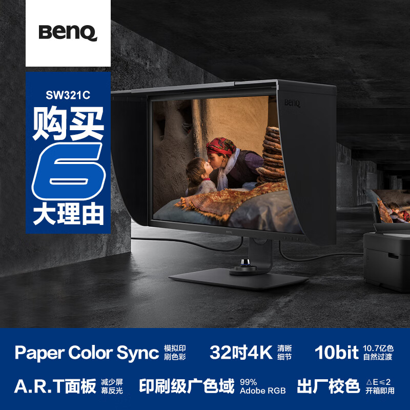 明基(BenQ)SW321C 32英寸4K 10bit HDR广色域高色准硬件校准印刷级专业摄影修图显示器(Type-c可充电)价格:18999.00元!