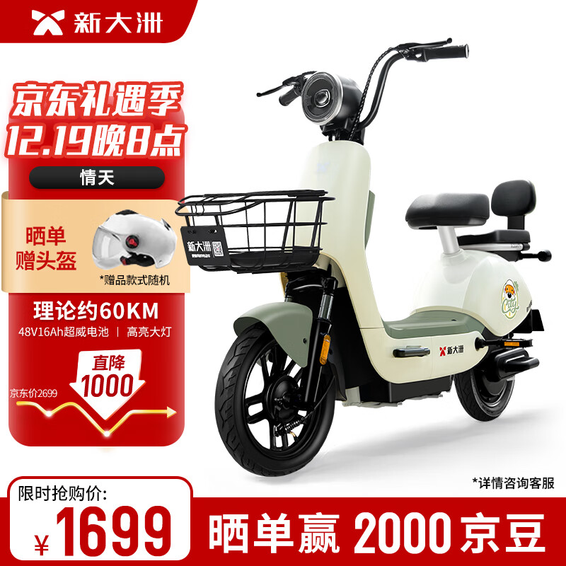 新大洲电动自行车女士小型电车轻骑两轮踏板成人电动车新国标派乐 情天价格:3399.00元!