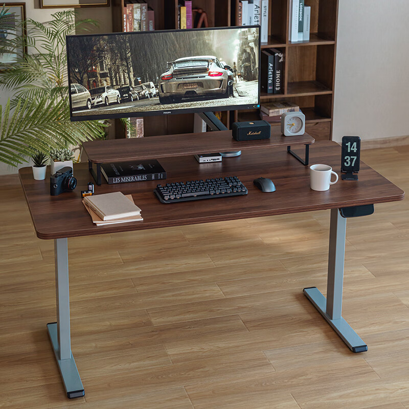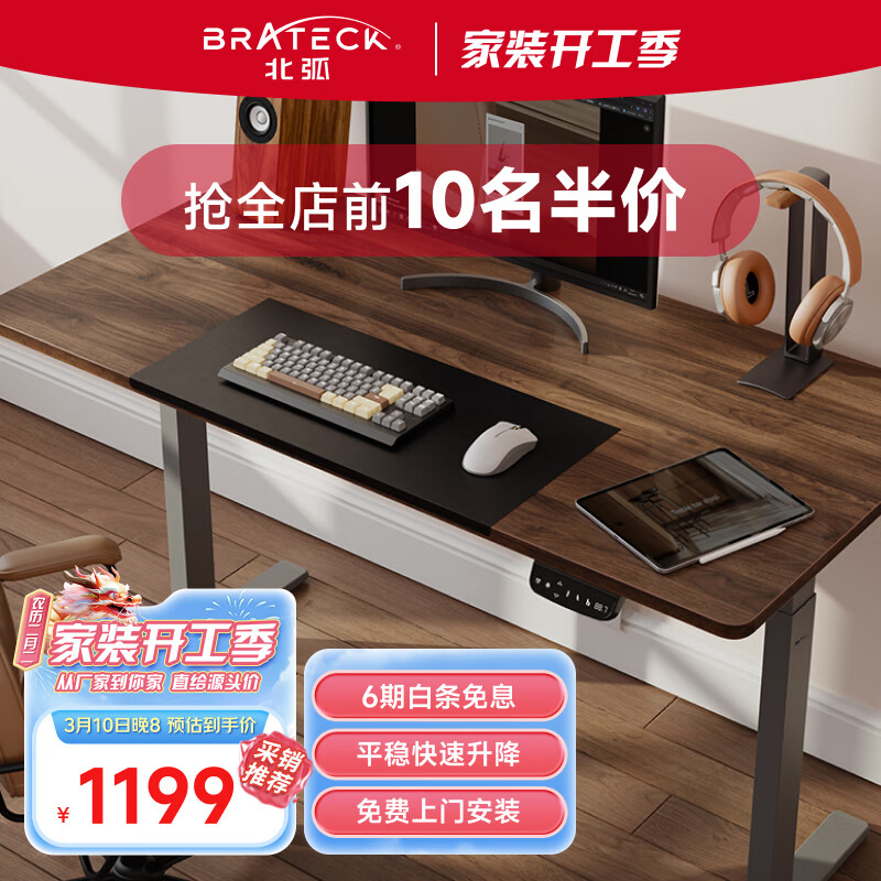 Brateck电动升降电脑桌 北弧站立办公书桌 工作升降台 K2棕1.5米价格:1409.00元!